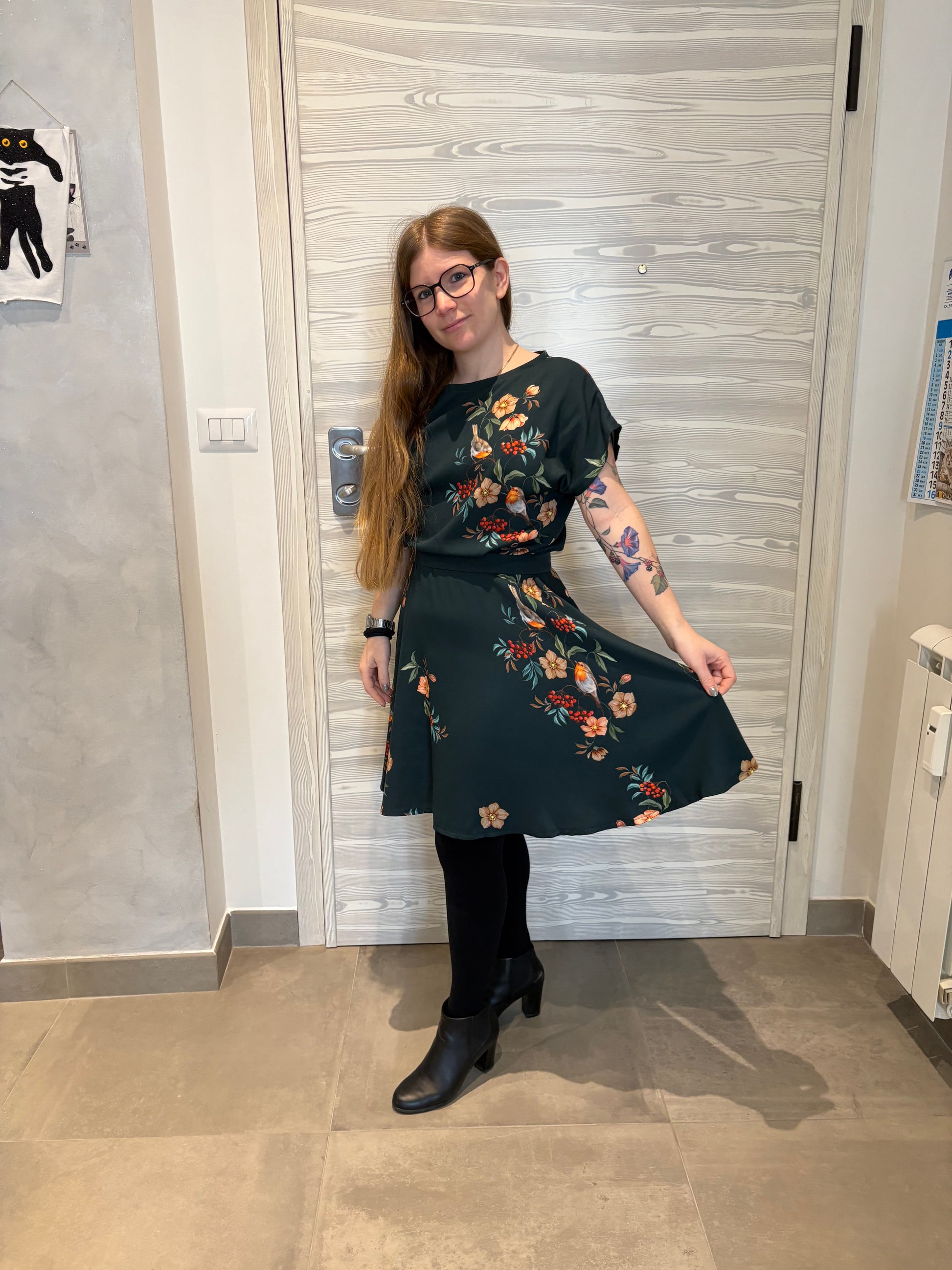 Abito Tulipano twill di viscosa con gonna mezza ruota.