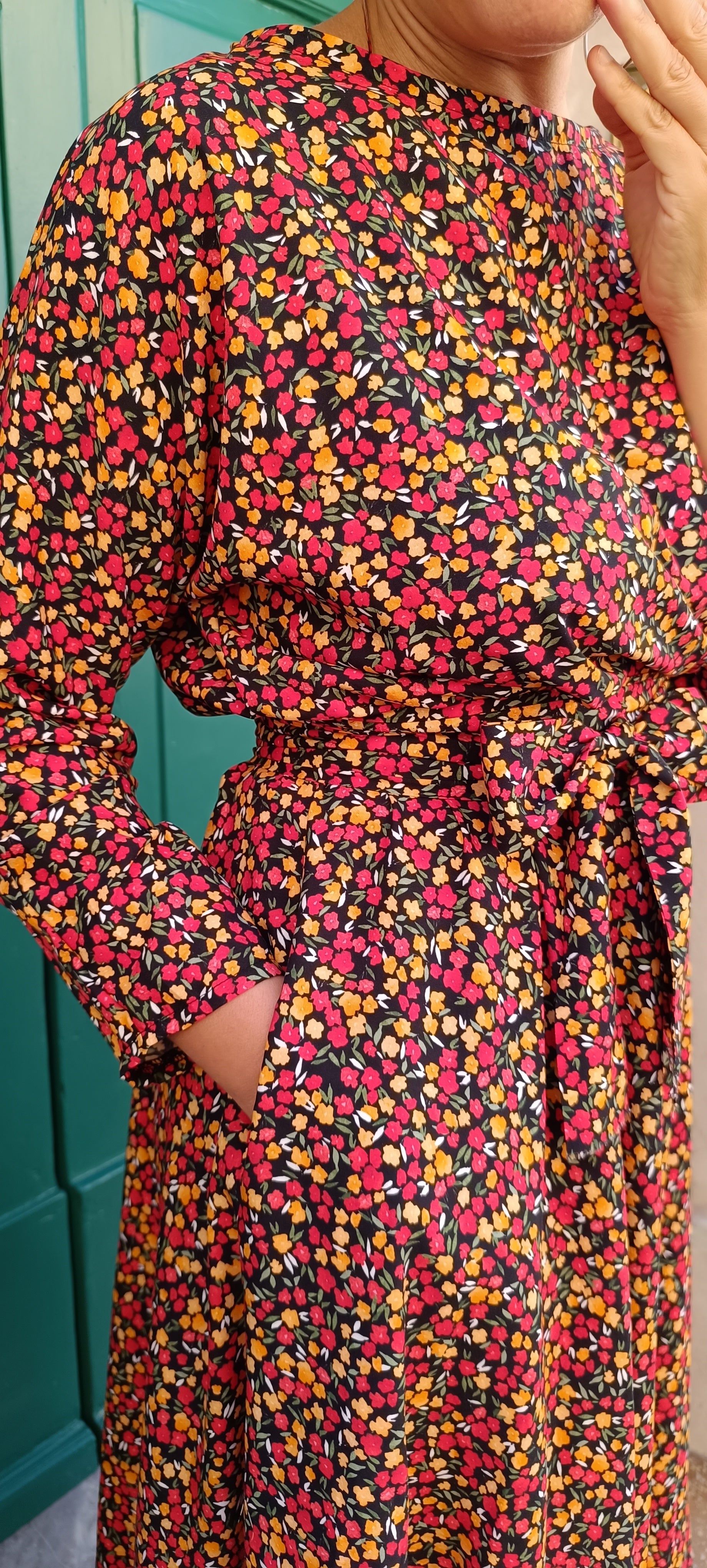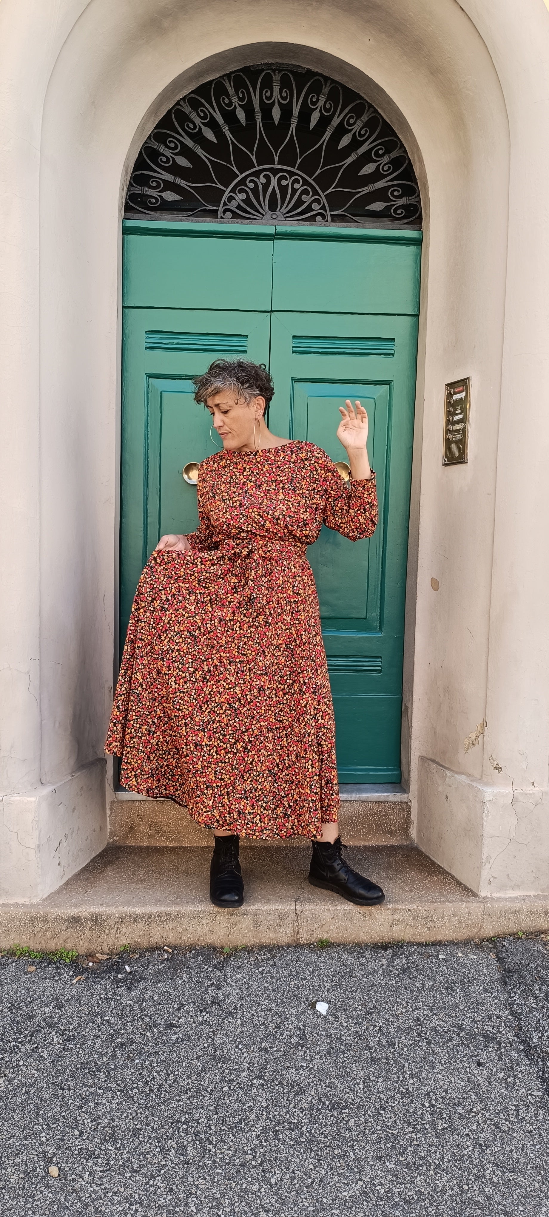 Abito Tulipano in viscosa con gonna mezza ruota tasche.