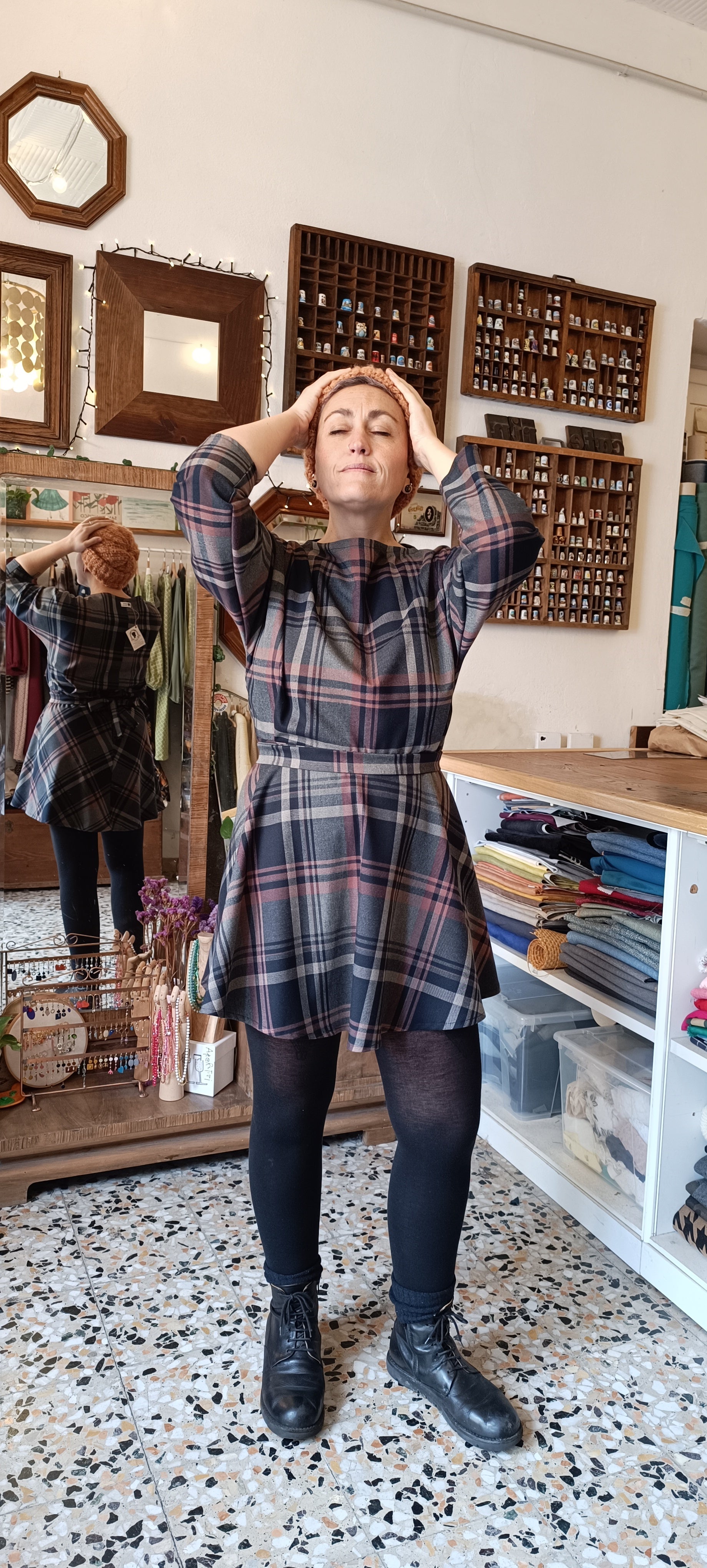 Top classico con maniche lunghe e scollo a barca, fusciacca removibile per rifinire il tutto.