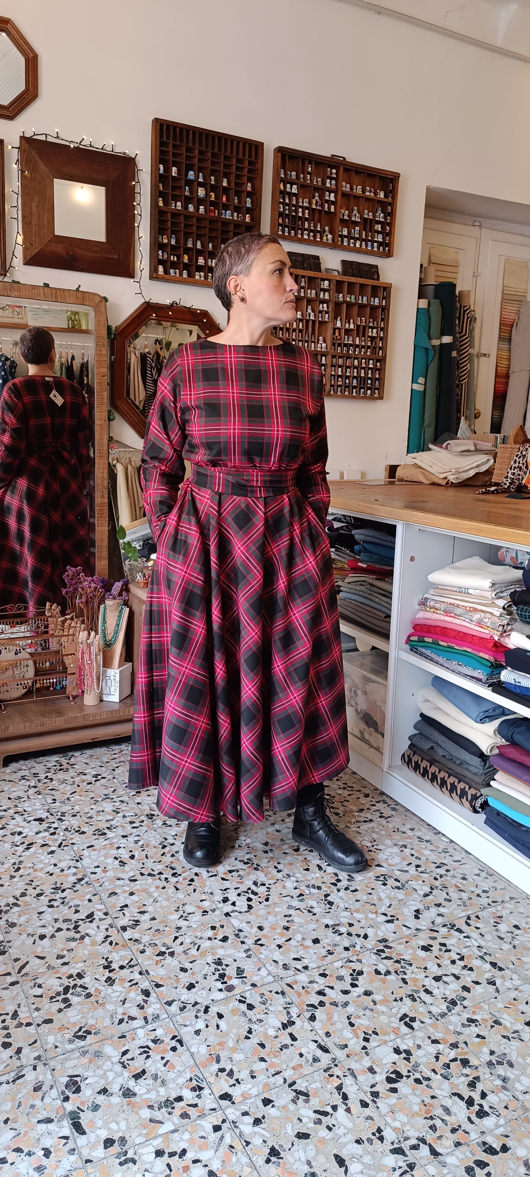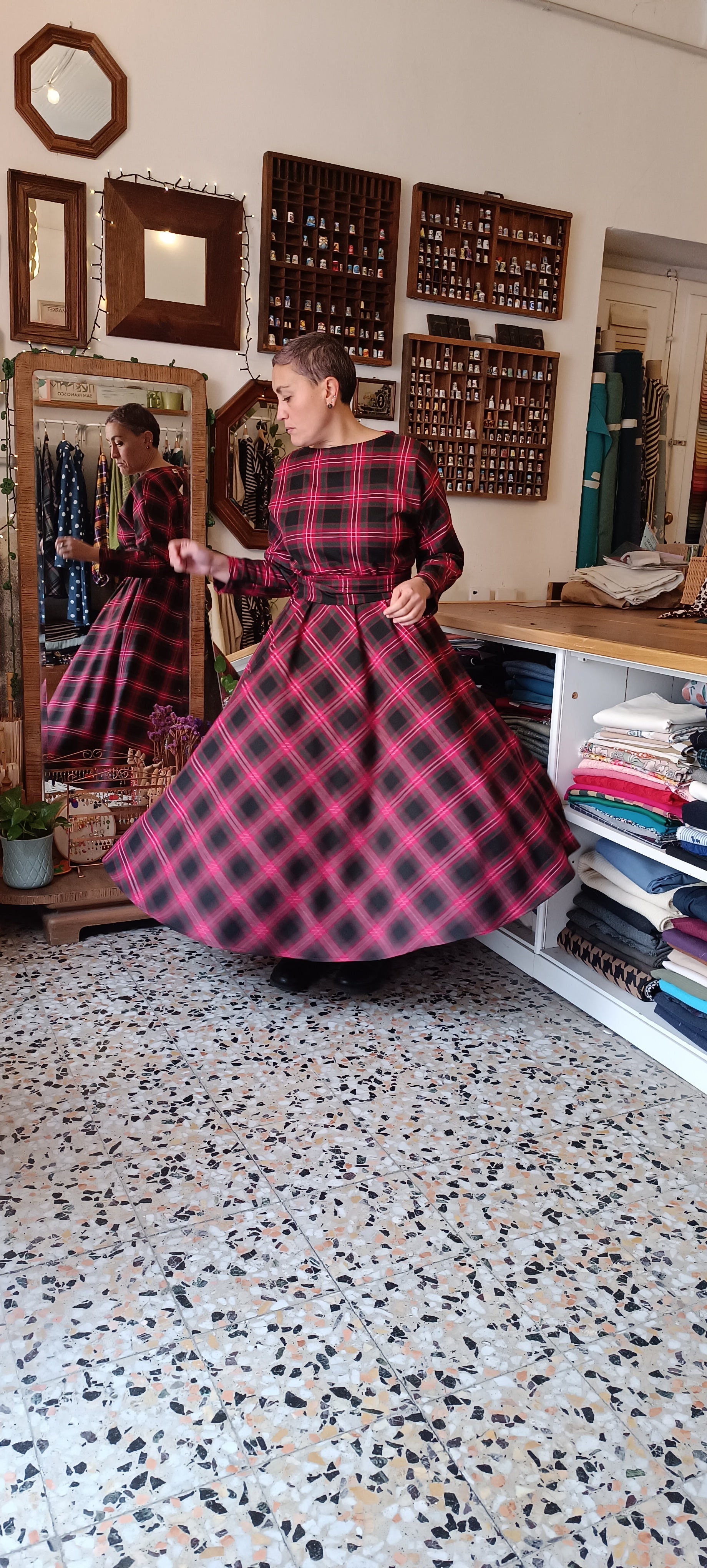 Abito Tulipano in lanetta con gonna mezza ruota tasche.