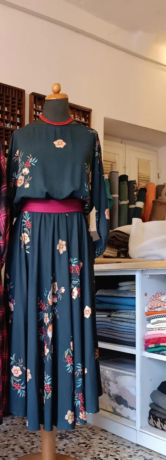 Abito Tulipano in twill di viscosa con gonna mezza ruota tasche.