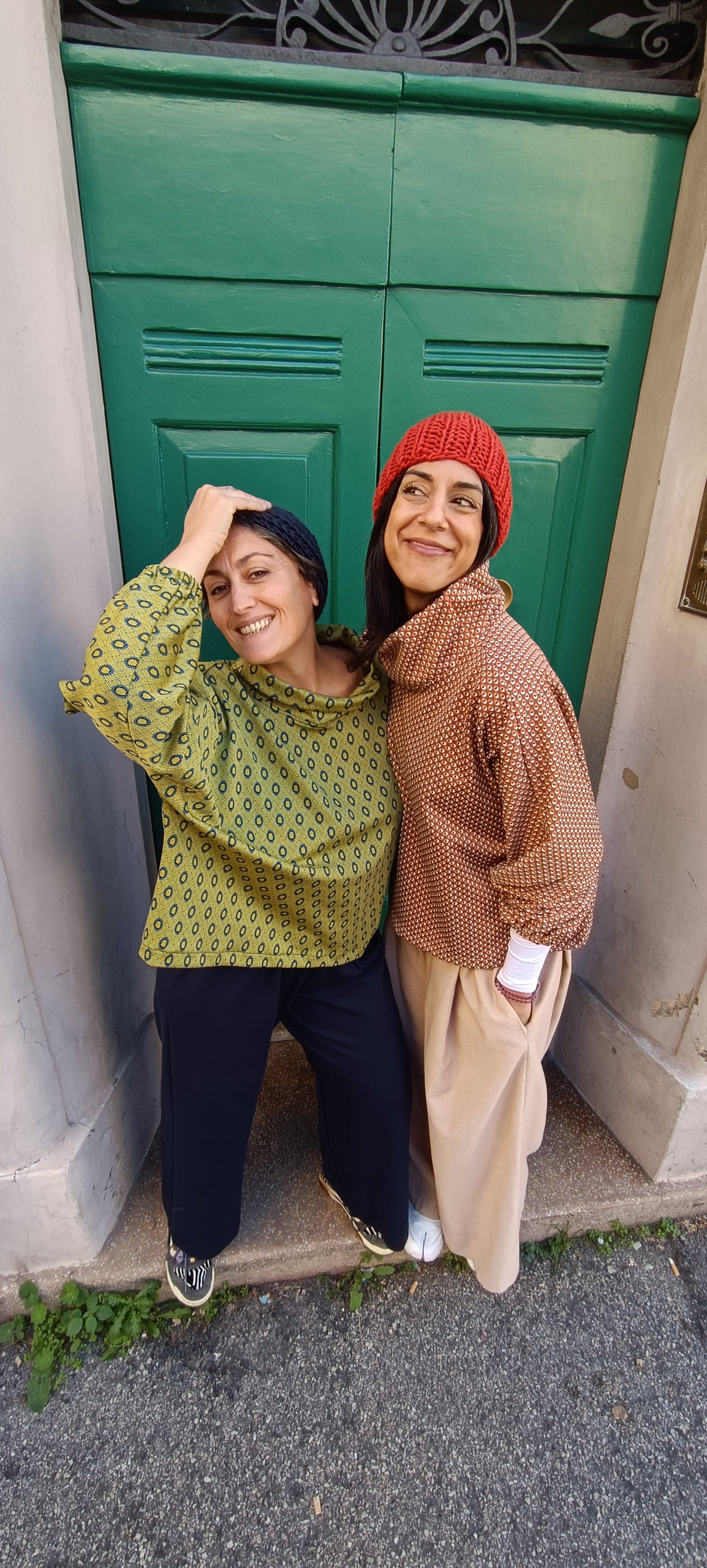 Felpina in punto Milano con maniche a sbuffo e collo alto.