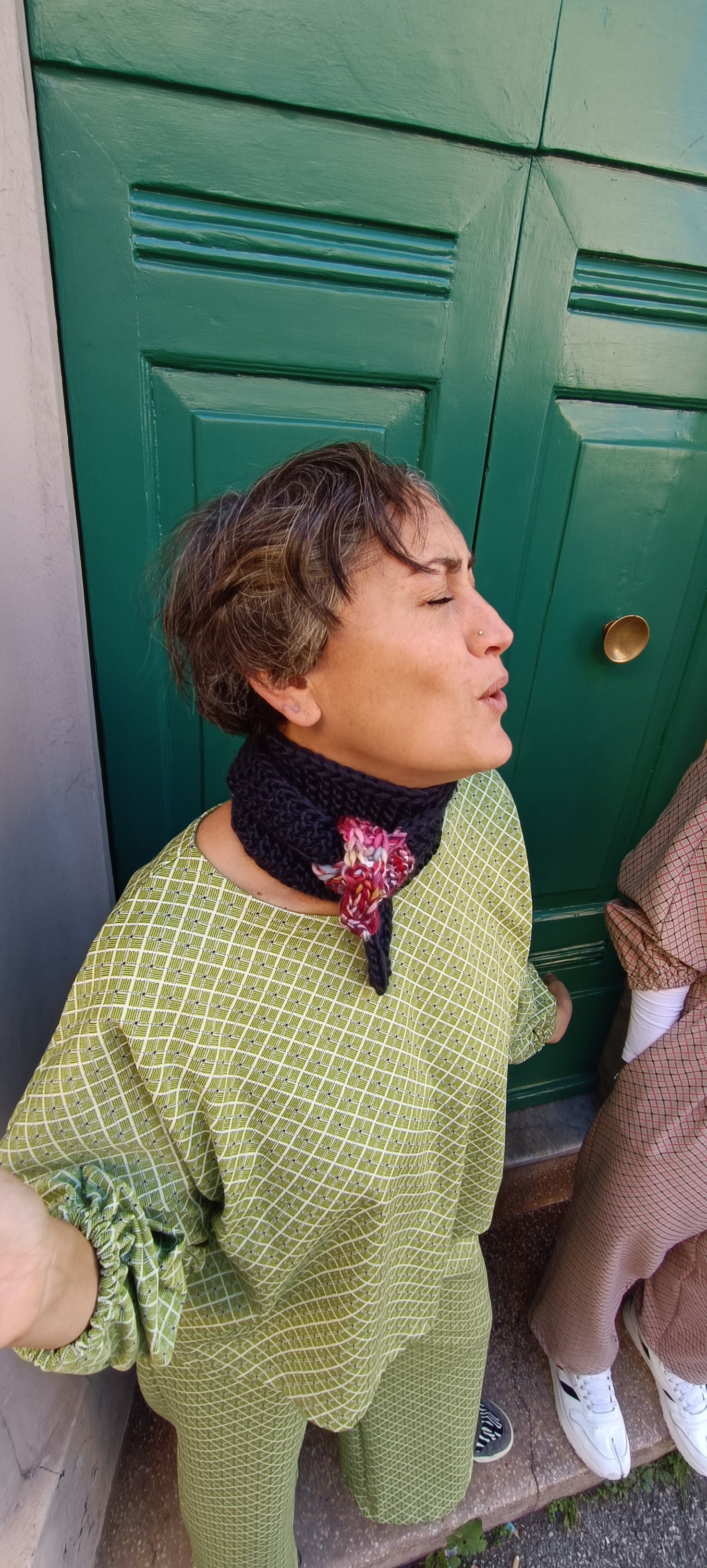 Felpina in punto Milano con maniche a sbuffo e collo a barca