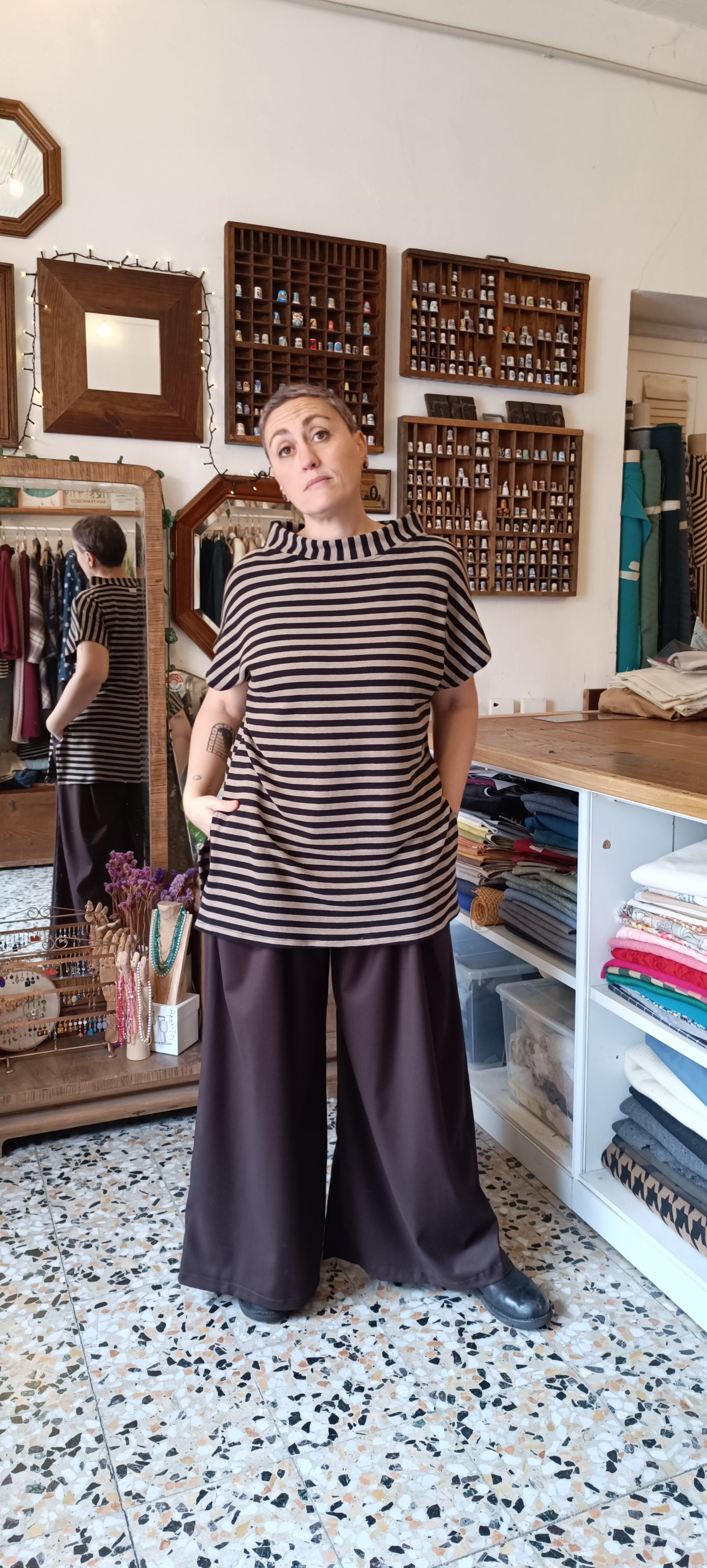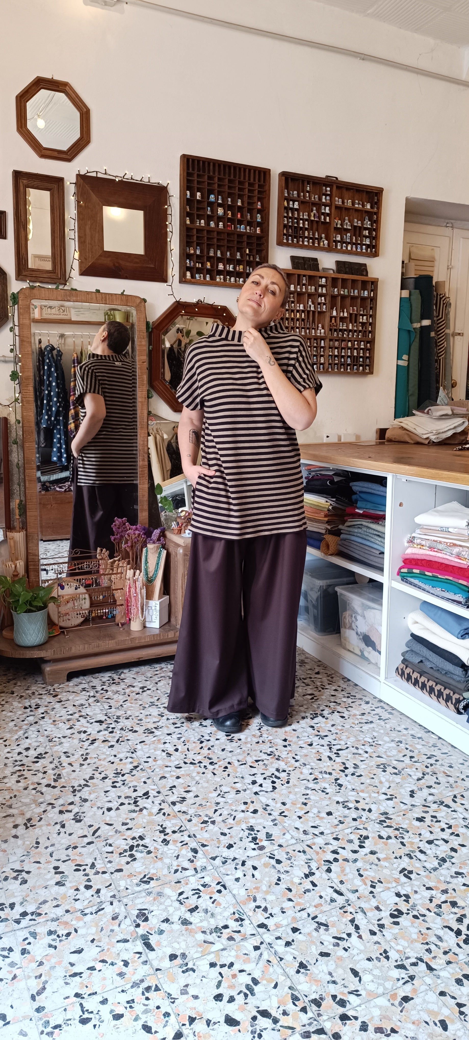 Gilet lungo caldo cotone morbidissimo, manica corta collo alto e spacchi laterali.