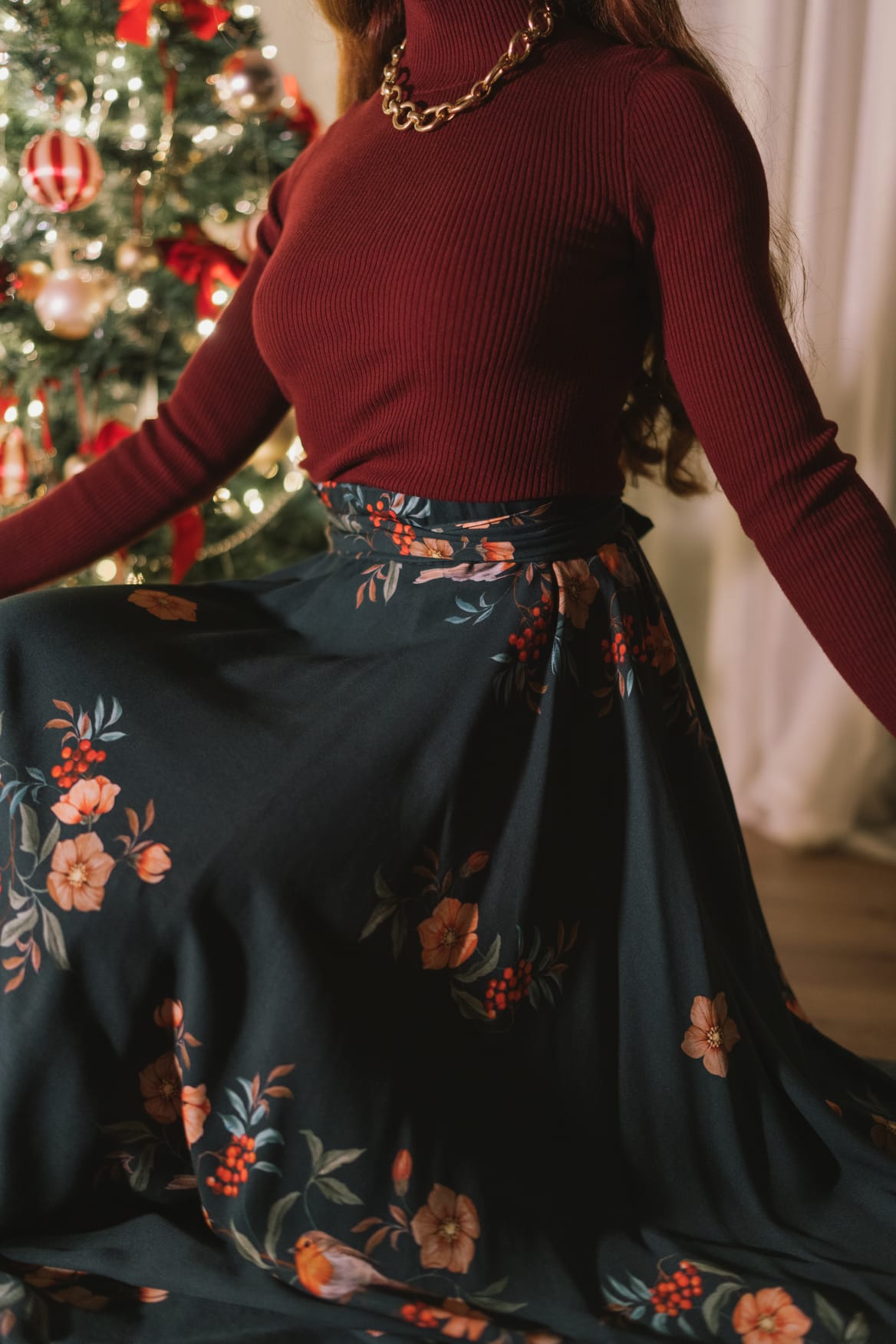 Gonna a ruota in Twill di viscosa. Elastico in vita ricoperto con tessuto, tasche sui fianchi. Fusciacca in vita per dare un tocco di eleganza coprendo l'elastico.