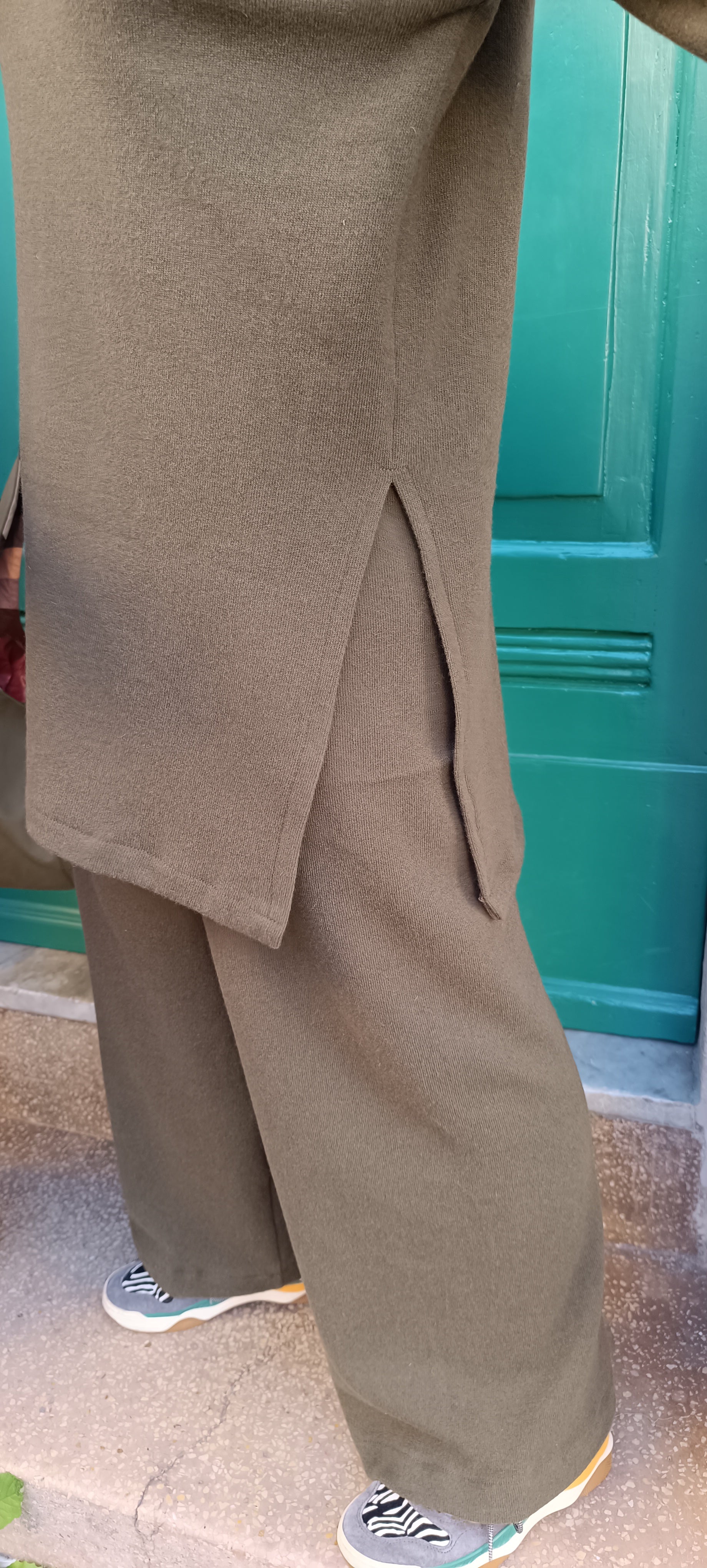 Pantalone palazzo vita alta con elastico rivestito in pura lana. Comodi versatili e adatti a tutte le occasioni, a palazzo.